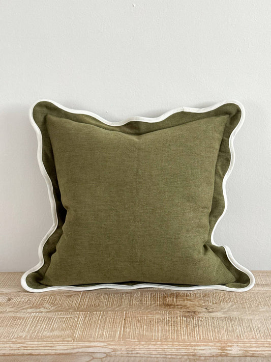 Chloe Olive Scalloped 45x45 - Linen Blend