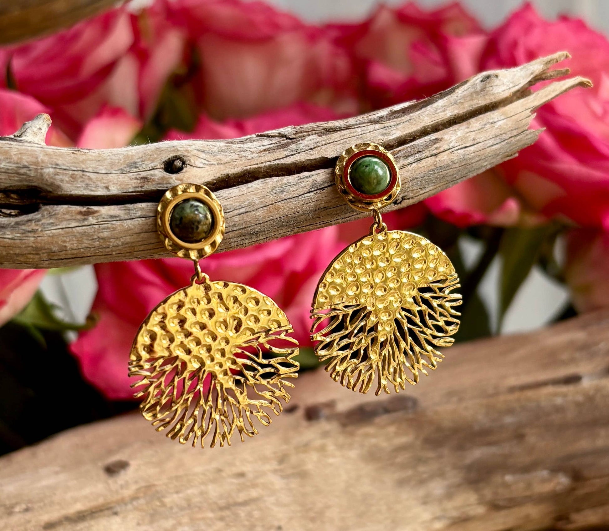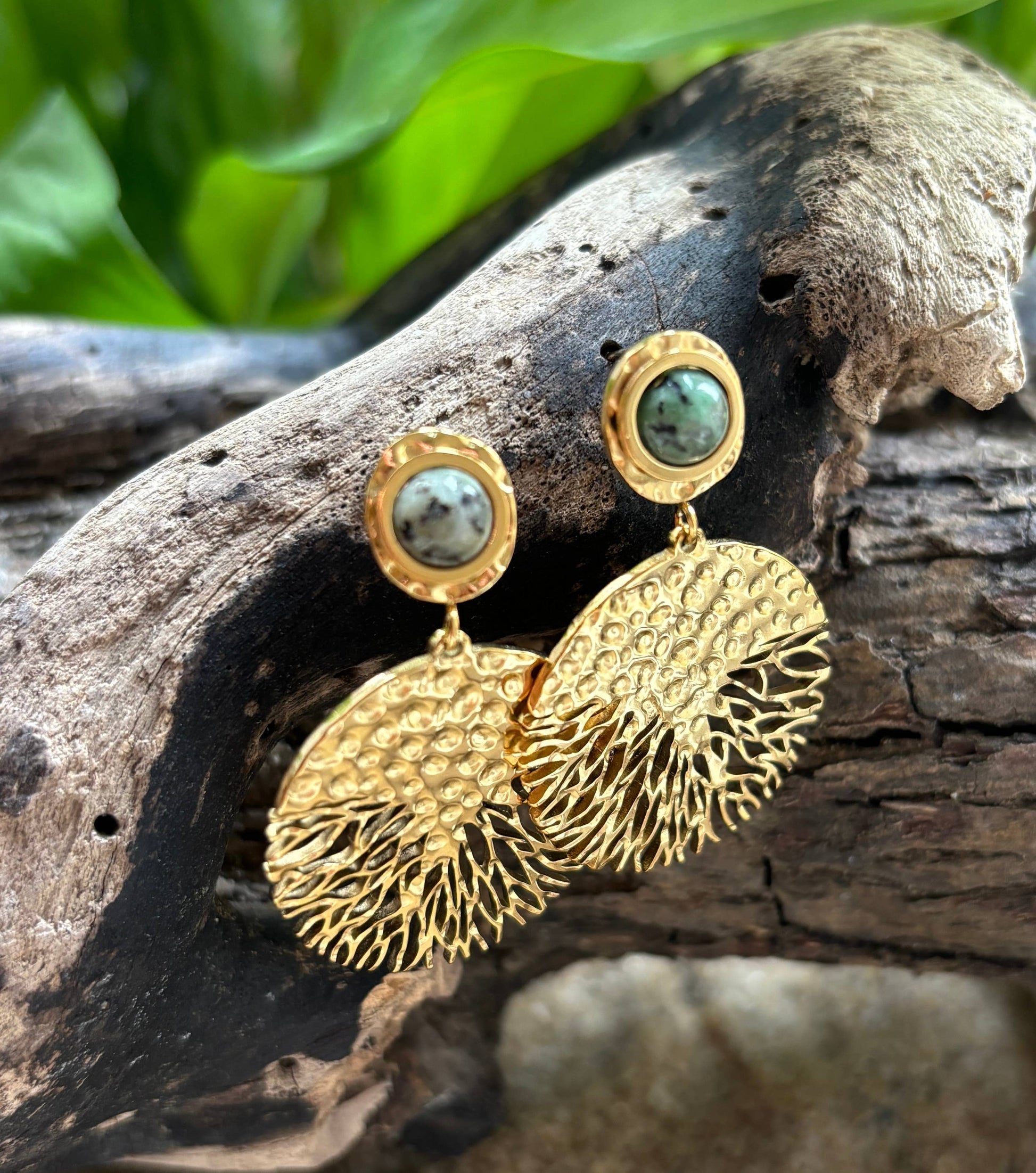 18ct Gold Plated African Turquoise Hammered Drop Earrings OR10