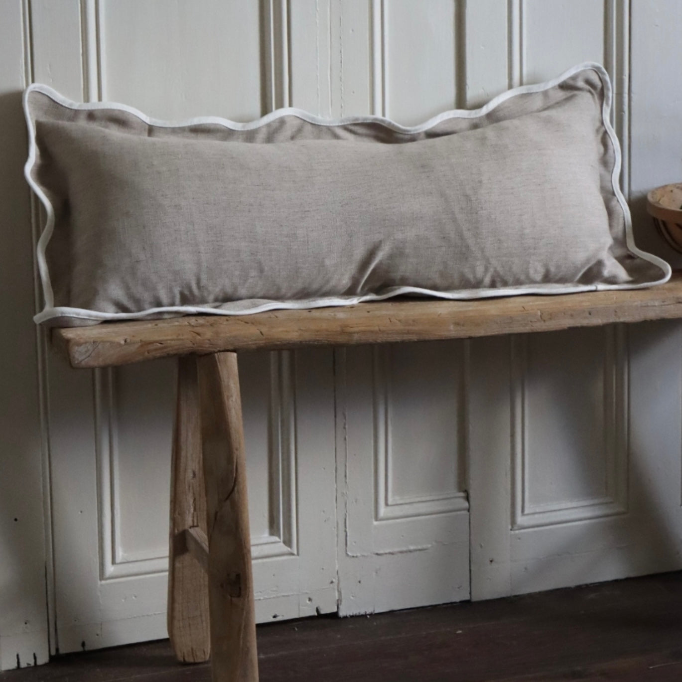 The Chloe Greige Scalloped Edge Bolster Cushion makes the perfect bed cushion – use to finish off a bedroom cushion display. Whether you’re lounging on the sofa or simply refreshing your living room decor, this neutral cushion provides the softness and cosiness you crave. This bolster cushion is also effective when used on a window seat – it adds visual interest without overcrowding the space.
