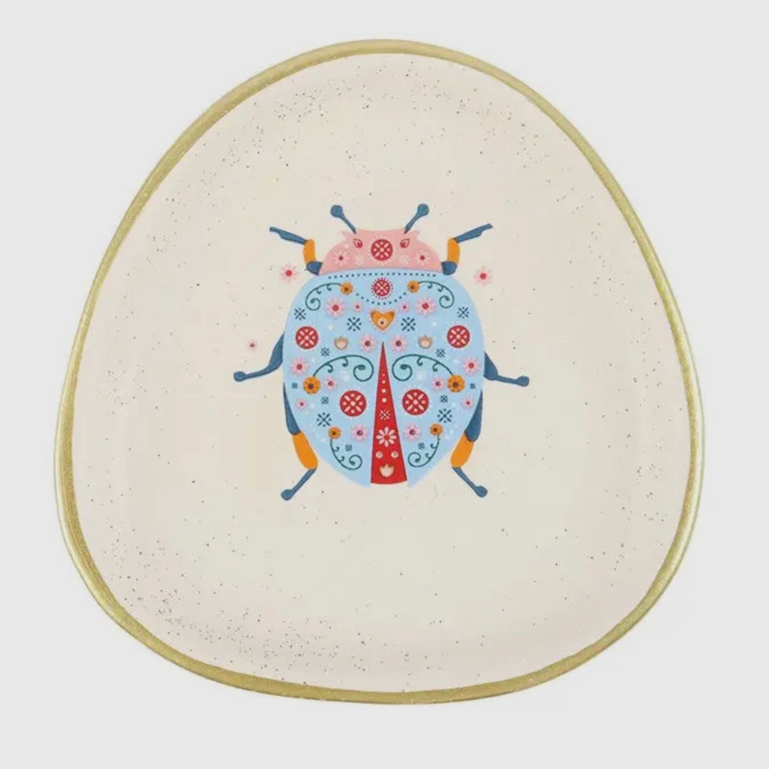 Keep your treasures safe with this sweet and cheerful set of trinket dishes. Crafted in organic shapes with playful floral bug designs, a speckled ceramic finish and gold edging, they will make whimsical and functional additions to your decor.